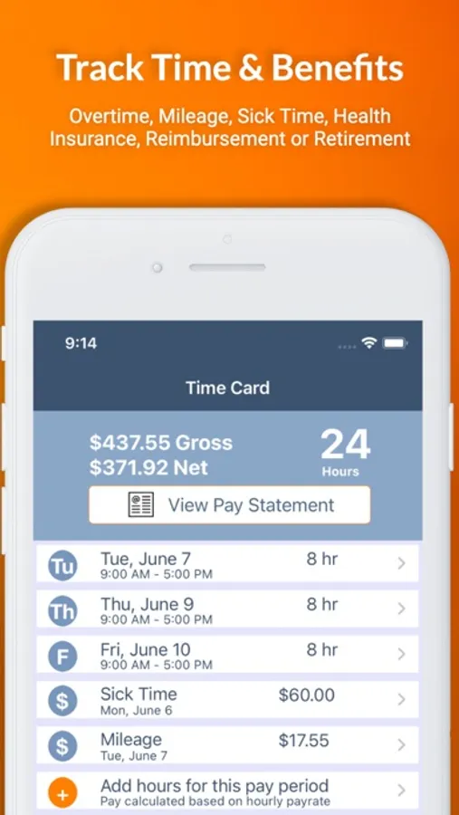 * Time tracker - Track regular hours and overtime worked by your caregiver.