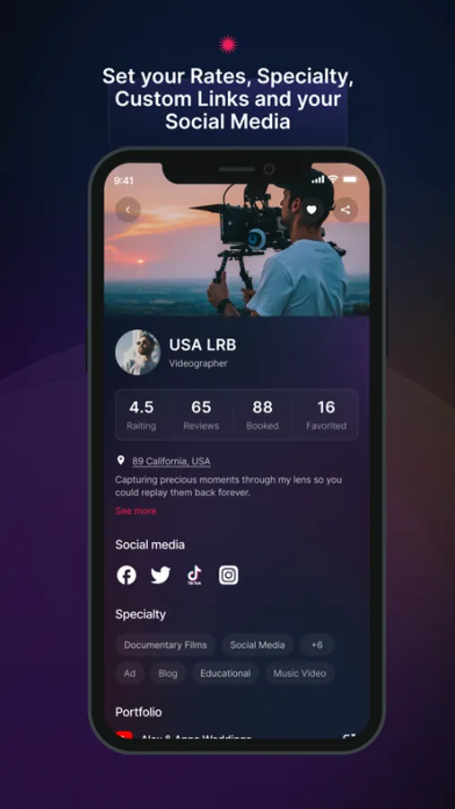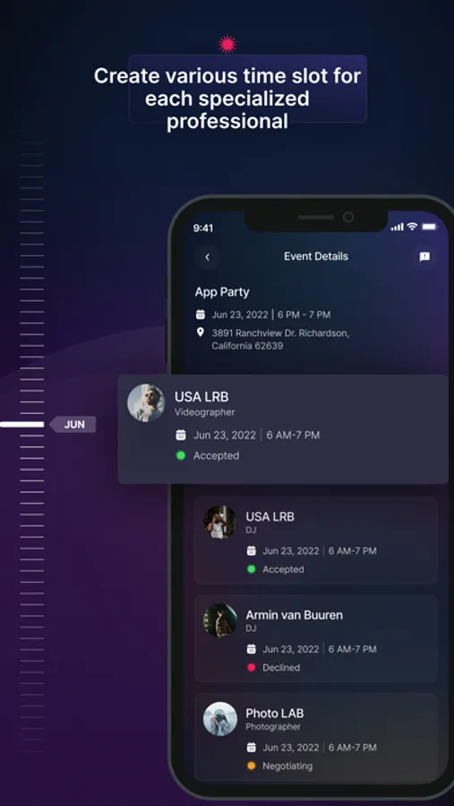 As a professional, create an account with your rates and your equipment. Take deposits from clients. See more movement and book more events as an artist. Let customers view your work and get booked for future events from previous customers.