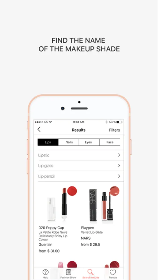 The application will select decorative cosmetics that are closest in shade to the one you selected. There are more than ten thousand cosmetics in the catalog.
