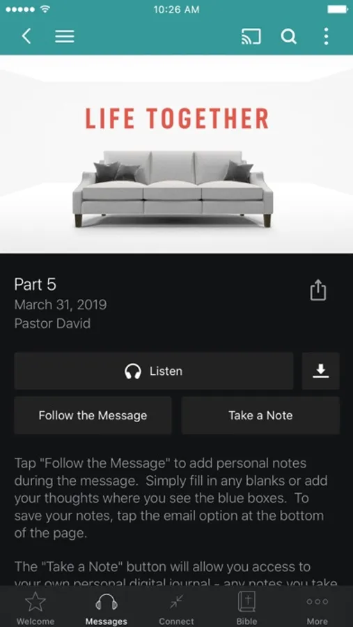 You can listen to messages, access a free Bible, see upcoming events, connect with our ministry groups, give securely and easily, find service times and so much more.