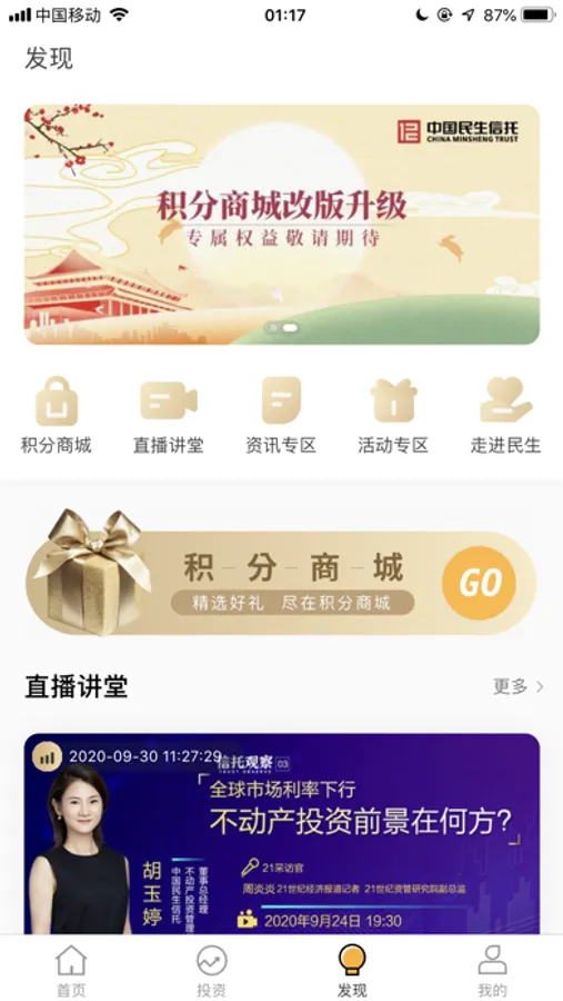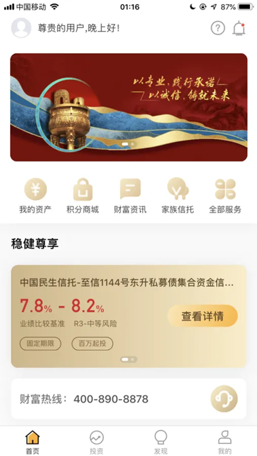 民生信托APP为高净值客户提供众多实用功能,及时了解热销产品,个人资产随手掌握,在线客服实时响应,专属理财经理提供专业服务,人脸识别保障客户账户安全。