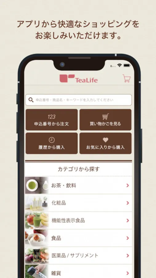 ティーライフで販売している商品をカテゴリー・フリーワードで検索できます。