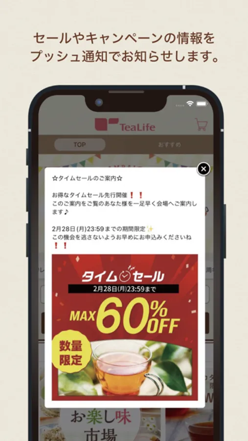 新商品やアプリ限定セールなどをいち早くお知らせします。