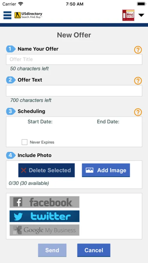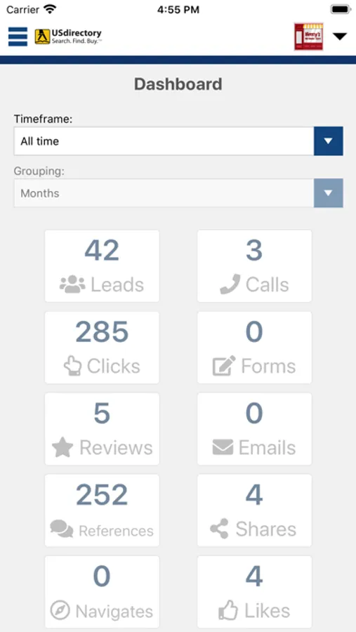 View your account’s performance and get detailed metrics about how customers are reacting to your active promotions on USdirectory, including calls, navigates, social media shares, and much more. USdirectory’s Merchant app really allows you to close to the loop on your company’s local digital marketing efforts and keep track of its pulse.