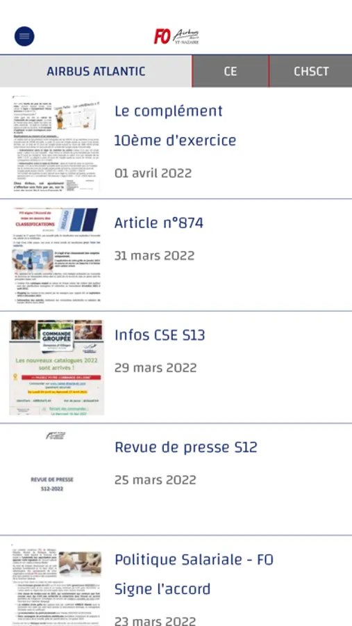 Application destinée à toute personne intéressée par les activités de FO AIRBUS ATLANTIC St-Nazaire.