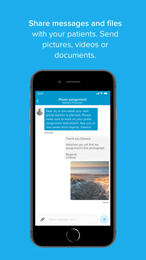 - Share messages and files with your patients