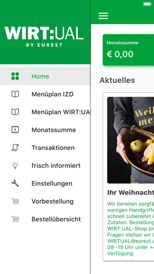 Bargeldlos bezahlen, Menüplan einsehen und auf Wunsch Nährstoffe tracken - alles möglich mit "WIRT:UAL by Eurest".