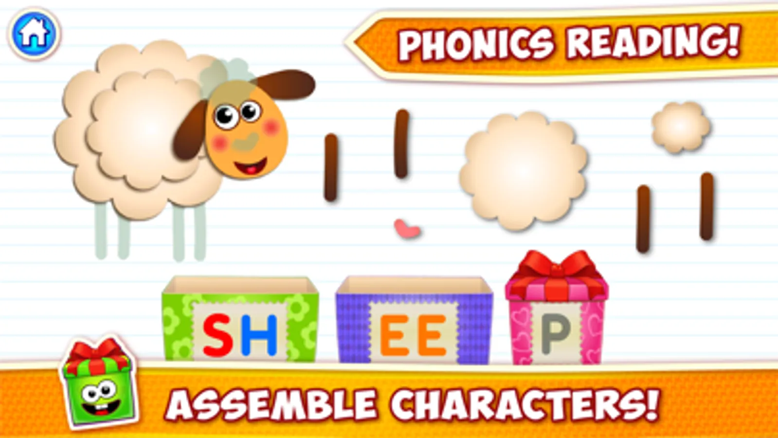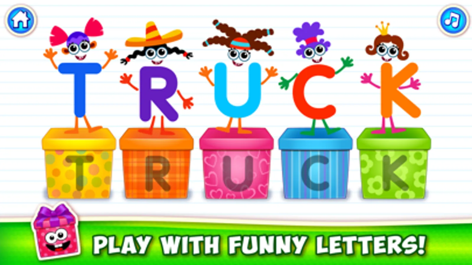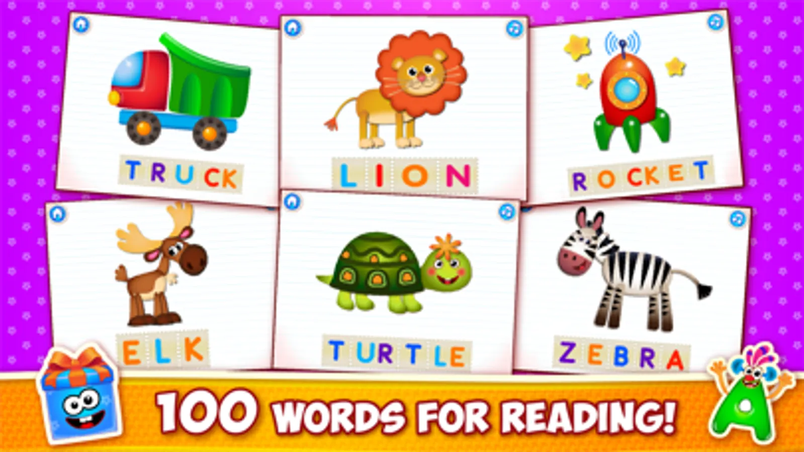 The animated, joyful letters in boxes will help your child to learn the alphabet and to read more than 100 different words! There are two learning modes in the game: reading by syllables and reading by letters.