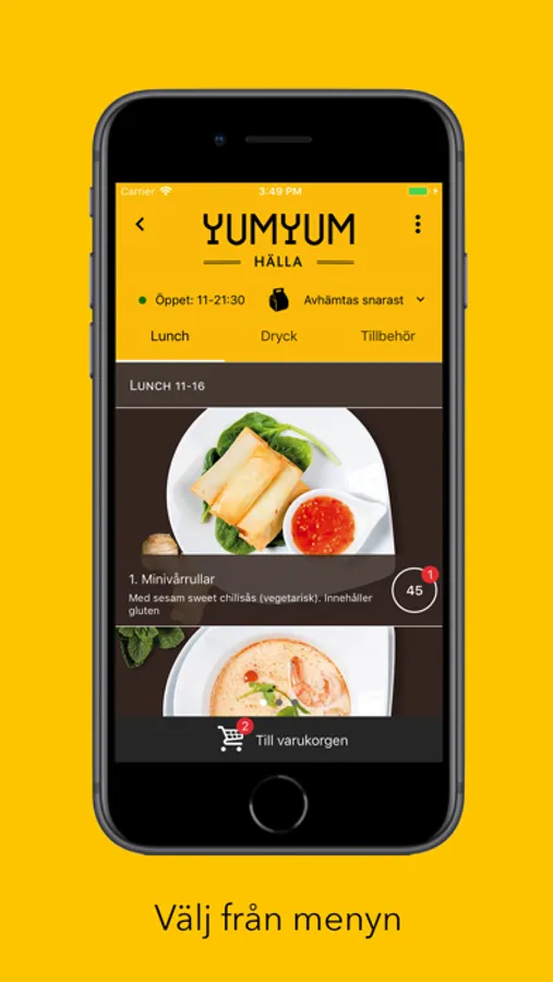 - Beställ med mobilen och säg till oss så kan du hämta din mat i luckan.