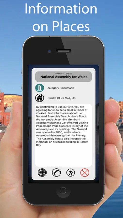 Looksee Wales is an Augmented Reality (AR) viewer used to find places of interest directly within your camera's view and add fun, knowledge and interest to your adventures and tours.