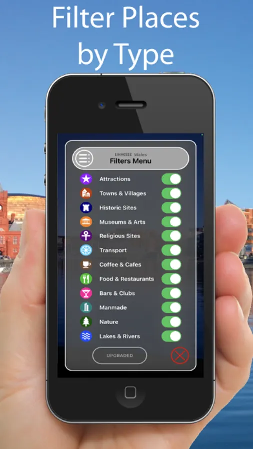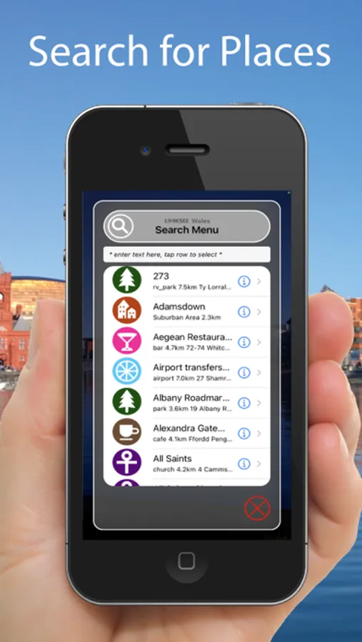 This version, for Wales, locates places in and around the entire country. That's right - it covers the entire country stretching from Anglesey in the North West to Chepstow in the South East. The edge of Merseyside in the North East to St David’s in the South West. This is an area of nearly 21,000km2 and includes over 32,000 things to see in the App.