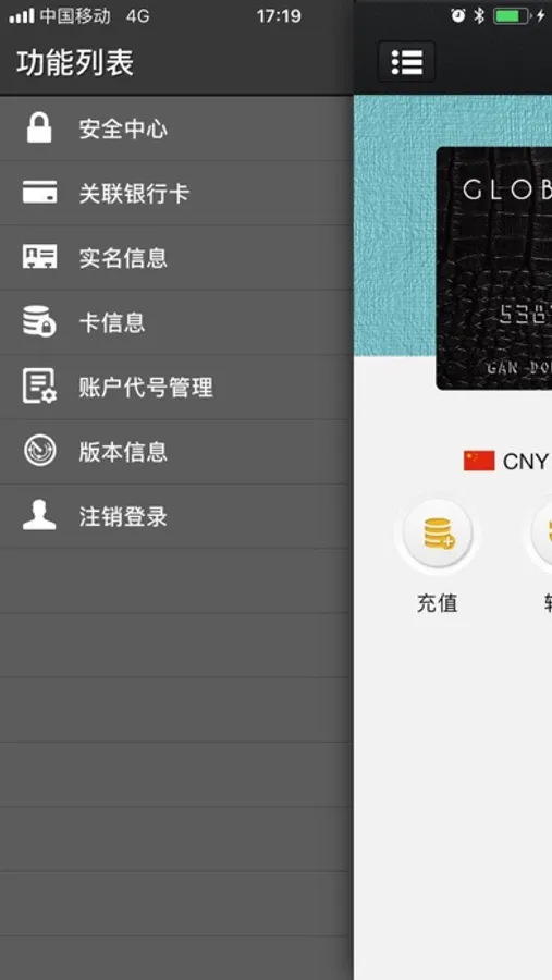 2、 通過刷卡和關聯銀行卡對全球付帳戶進行充值。
