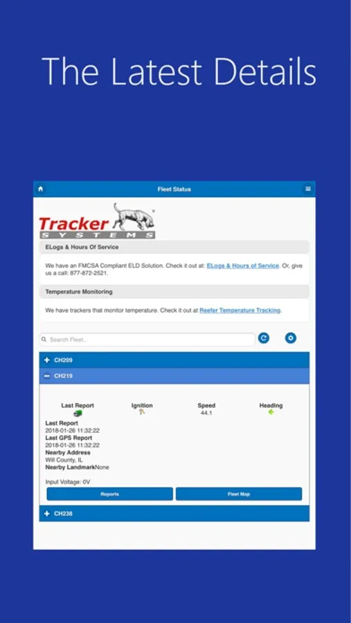 Easily view your fleet's current status, recent routes and explore our full set of reports. The app is optimized for iPhones and iPads. It is easy-to-use and gives you all the information you need about your cars, trucks and assets.