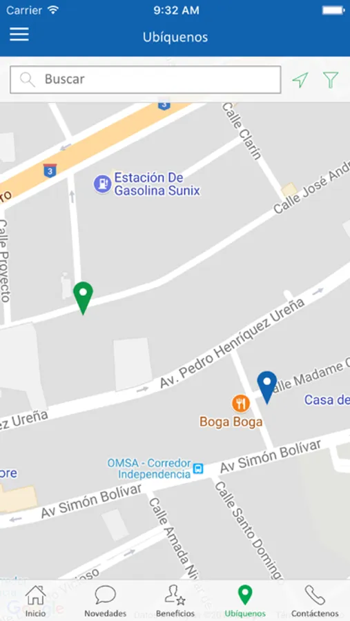 • Navegar, contactar y compartir un Centro de Negocios, Cajeros Automáticos (ATM), Subagente Bancario (SAB) a través de Ubíquenos