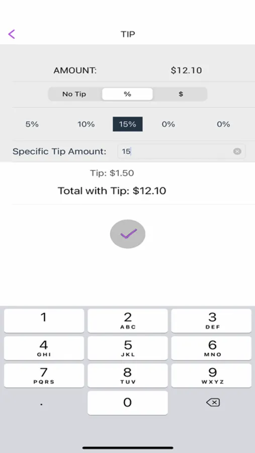 • Easily add tip to the bill