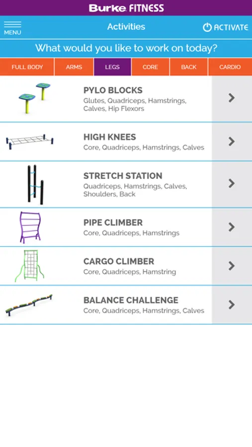 Welcome to the Burke Fitness Community where you can use both ELEVATE® Fitness Course and ACTIVATE® Fitness Circuit to improve your fitness no matter what you’re level. From fitness beginner to fitness mature, you will be provided with different levels of exercise for each of the components. The simple to follow instructional videos will help you get the most out of your full-body, outdoor workout. Find courses, connect with other users, log your workouts and compete against yourself and others by using the Burke Fitness app.