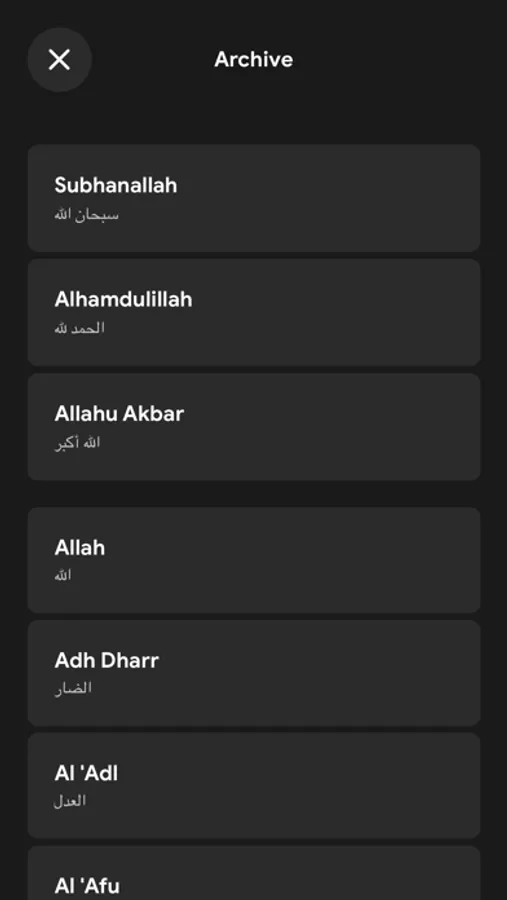 • Ability to count dhikr without looking at the screen with dynamic touch.