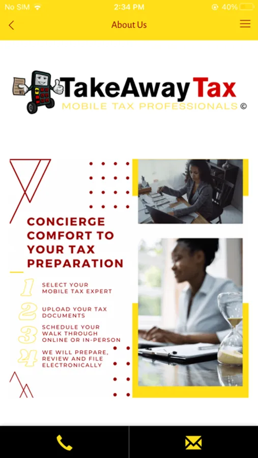 Take Away Tax is a co-op of mobile tax professionals based out of Houston, TX. This app will list services offered, provide contact information, and allow users to book appointments with tax professionals.