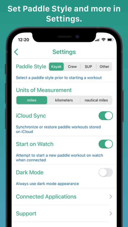 • Sync with iCloud so saved paddle workouts are available across all your devices.