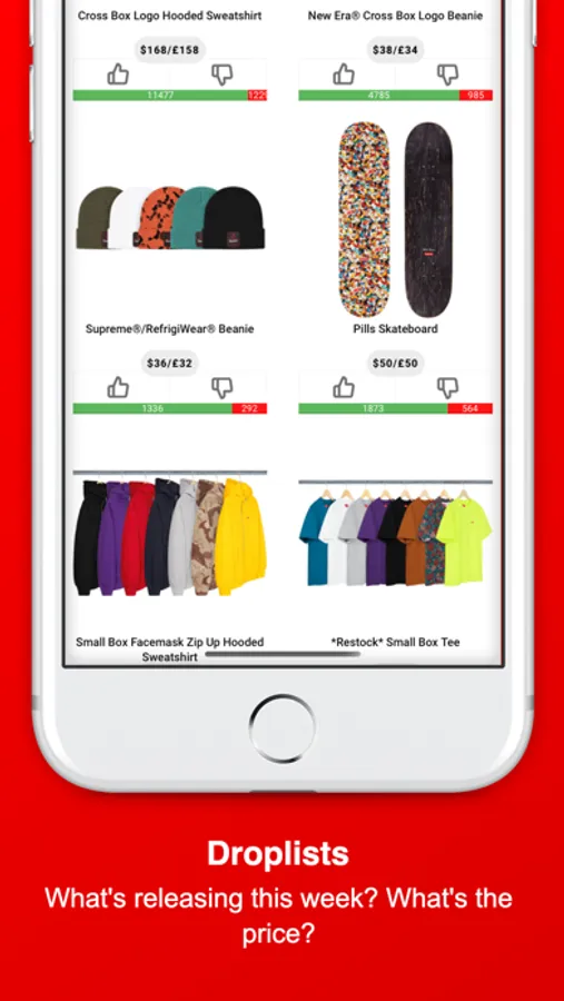 Stay informed about the fashion brand "Supreme" (not affiliated) and download this Fan-App. Find out what might be dropping on Thursday, get notified about Restocks of already sold-out items, view which item sold-out the fastest, upvote your favorite Season items, dig in the item history of the anticipated brand, attend awesome Giveaways & get to meet new people and communicate with the community and culture. And that isn't all - Check this Fan-Made-App out. From Fans for Fans!