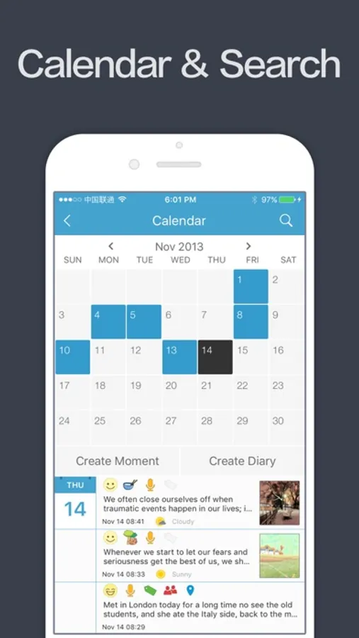 You can save all thoughts & feelings germinated in your mind with "Diary".