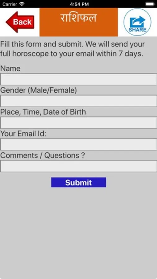 Hindi Horoscope is free app to read your horoscope daily in Hindi and English languages. You can also read each zodiac character on this app. We also provide free service to get your full horoscope on email by just fill your details in our app.