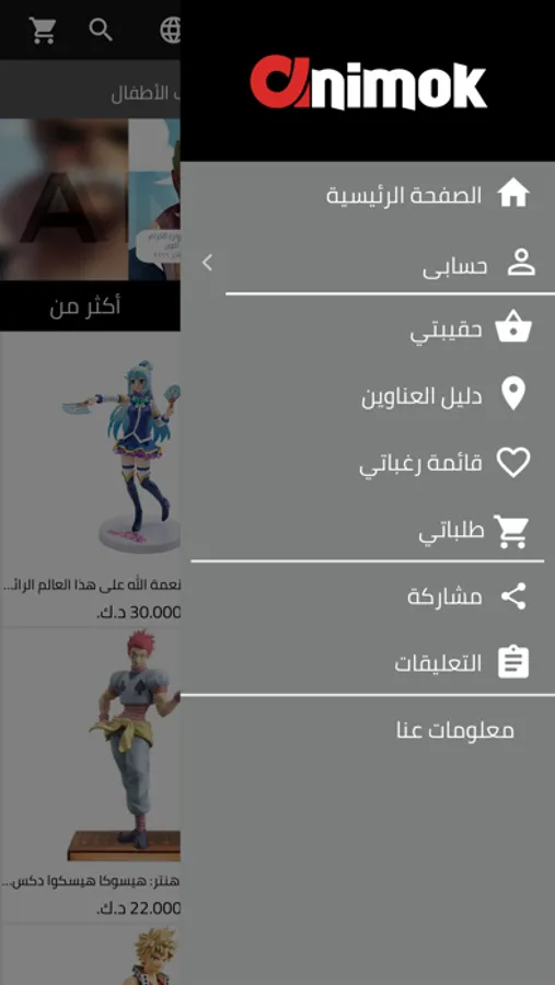 Animok is a unique shopping application dedicated to Anime, games and comics in the middle east. Animok is exclusively offering e-commerce service in both Arabic and English and offers the latest products (figures, accessories, brands, variety, games, and others). We aim to be the leading online shopping site in the Middle East.