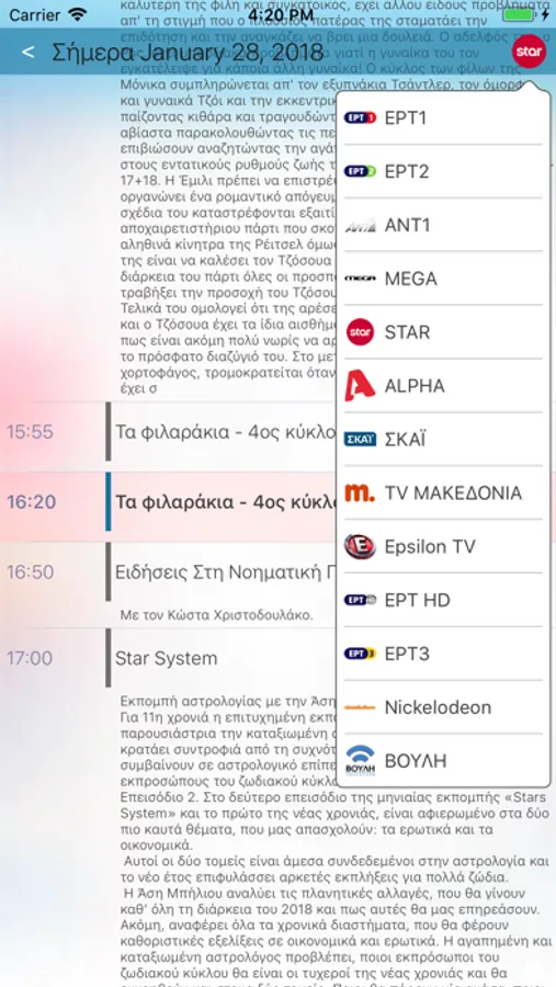 Μια απλή και λειτουργική εφαρμογή με το προγραμμα της ελληνικής τηλεορασης.
