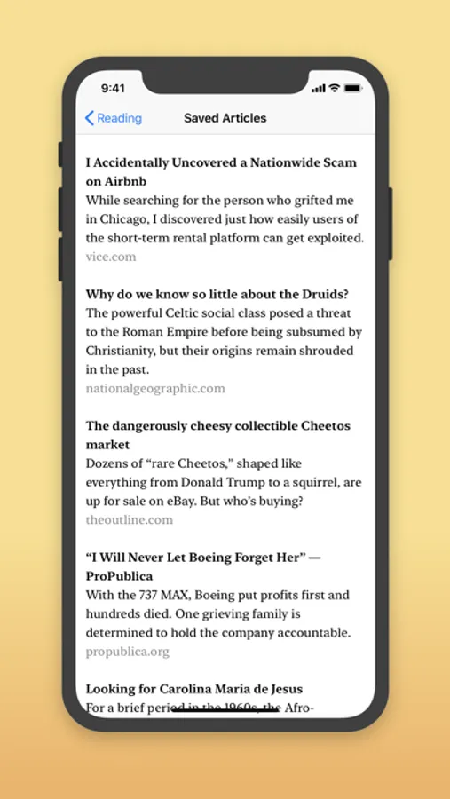 The reading experience is paramount. Saved articles are shown beautifully with a comfortable, distraction-free layout. Side-by-side pages mean you can focus on reading instead of scrolling. Multiple columns on iPad make effective use of the large screen and avoid long lines, which would be hard to read.
