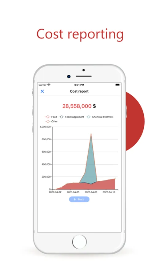 - Pond data (such as environmental indicators, costs, feed usage logs, animal growth) are visually represented by a graph.