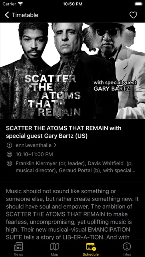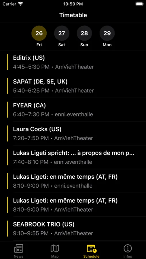 Download the entire program to access it anytime, anywhere. Stay up to date on all venues and events, and never miss an act that interests you again. Stay informed about spontaneous program changes, specials, and severe weather warnings with push notifications.