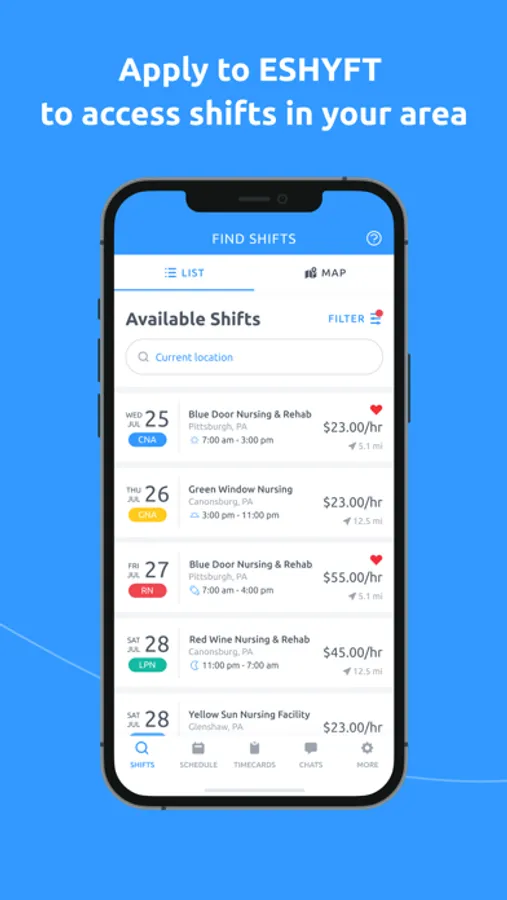 Find and apply for CNA, LPN, and RN shifts through the new ESHYFT app, the best way to earn additional income. Select the shifts that work for you, enjoy flexibility while doing the job you love.