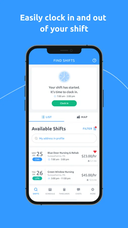 2. Find shifts - Find open CNA, LPN, and RN shifts in your area
