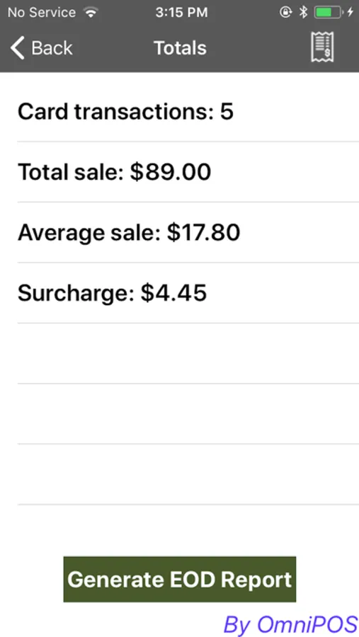 OmniPayOnGo provides a simple and easy way to accept credit card payments using integrated PayPal Here (PPH) Card Reader. Surcharge % can be predefined to be charged automatically. Receipt printing via Epson Bluetooth printer is available.
