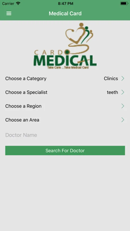 Medical Card App That provide Data about Clinic and Hospitals in coverage of our Company