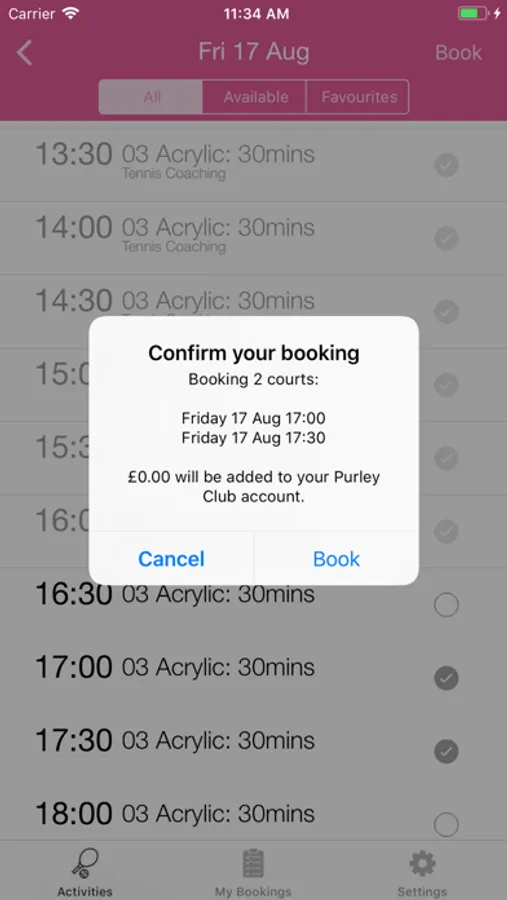 - View currently booked & available squash & tennis courts