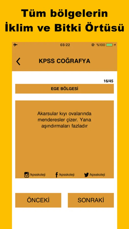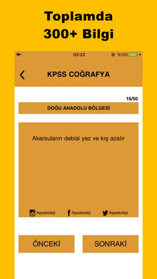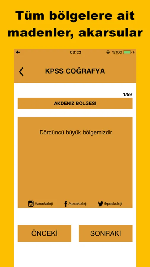 Kpss Coğrafya uygulamamız ile sizlere Türkiye'nin bölgelerinin en kritik bilgilerini sunmaktayız. Toplamda 300+ bilgiyi sizlere uygulamamız ile sunuyoruz. Kpss'de çıkması muhtemel güncel bilgilerin hepsi uygulama ile size artık çok yakın.