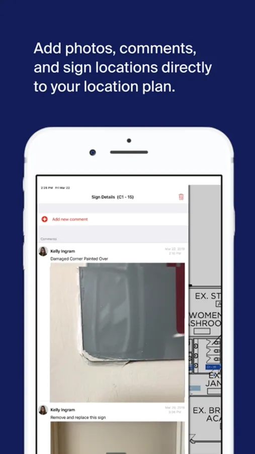 - Surveying and Auditing: Tap and hold on the plan to add a new sign marker. Take multiple pictures, add comments, and collect all necessary information