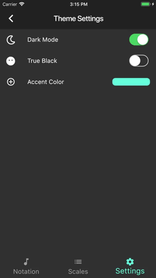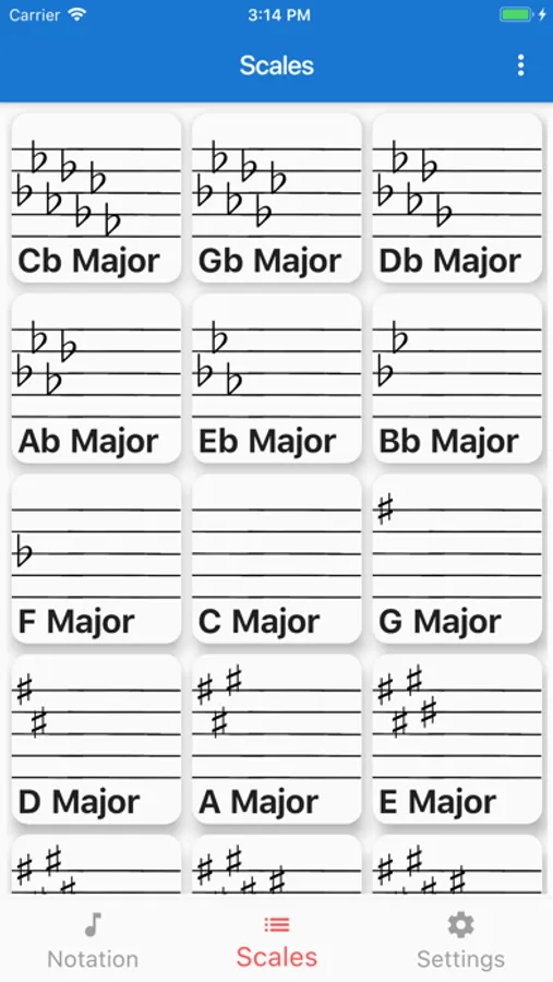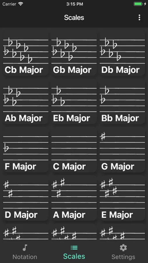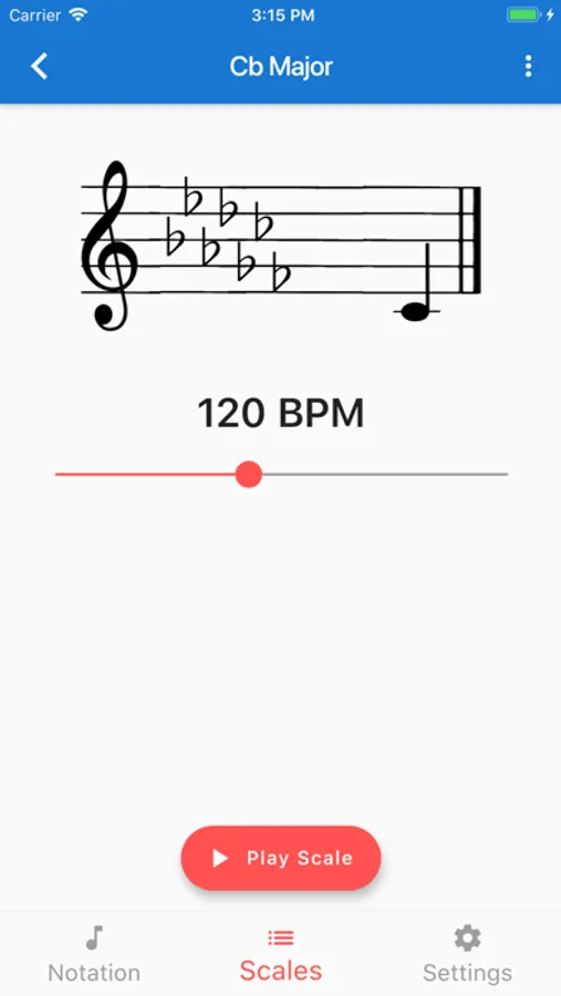With this app simply tap on and choose the scale and the same for the pitch. There is even a preview for each pitch whether it is # or b.