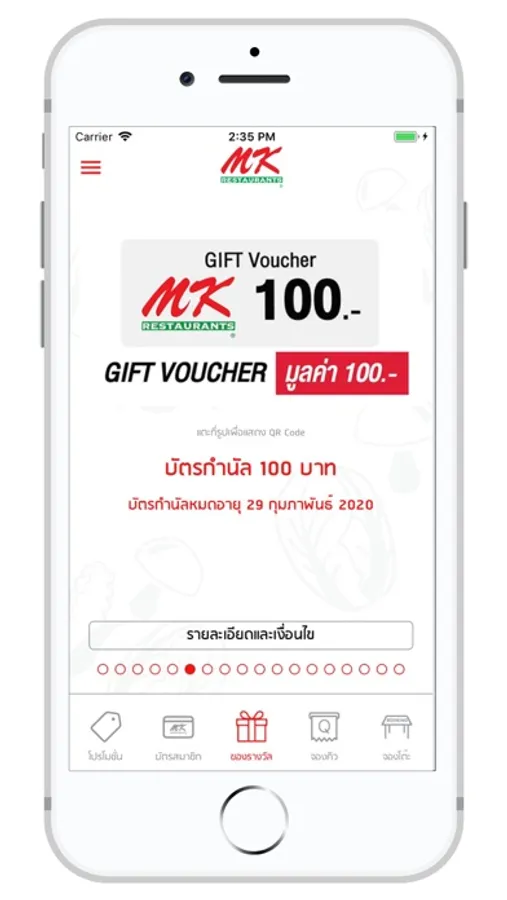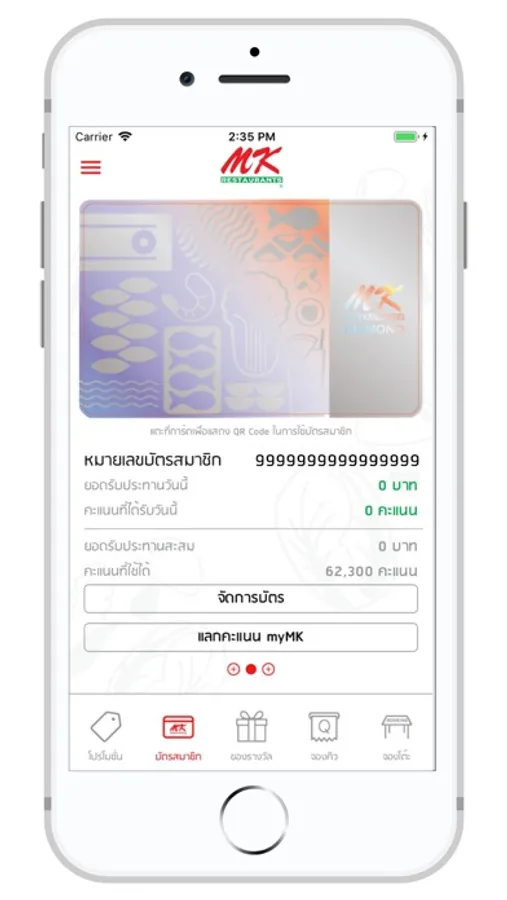 ระบบบัตรสมาชิก (E-Membership) : ให้คุณสะดวกยิ่งขึ้นไม่ต้องพกบัตร จัดการข้อมูลบัตรสมาชิก ตรวจสอบยอดการรับประทาน คะแนนสะสม แลกคะแนน และรับส่วนลดสมาชิกได้ด้วยตัวเองผ่านแอปพลิเคชั่น myMK