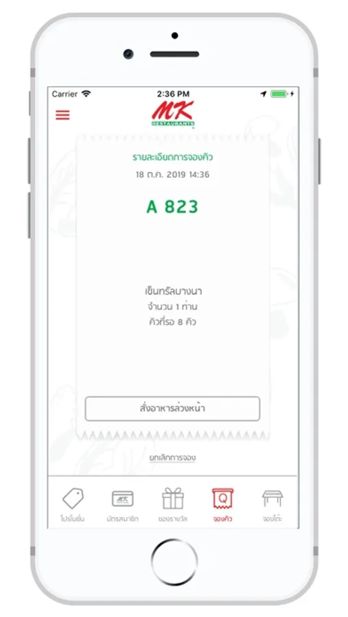 ระบบจองคิว (Queue Reservation) : คุณสามารถจองคิวสาขาที่คุณต้องการ โดยไม่ต้องรอคิวหน้าร้านนานๆอีกต่อไป