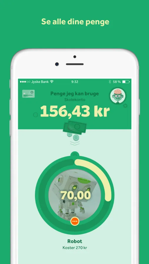 Dit barn kan se, hvor mange penge, det har i banken. Sammen kan I lave små opsparinger til det, barnet ønsker sig, følge udviklingen og tale om penge.