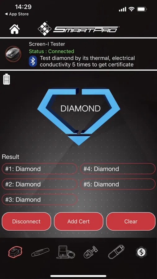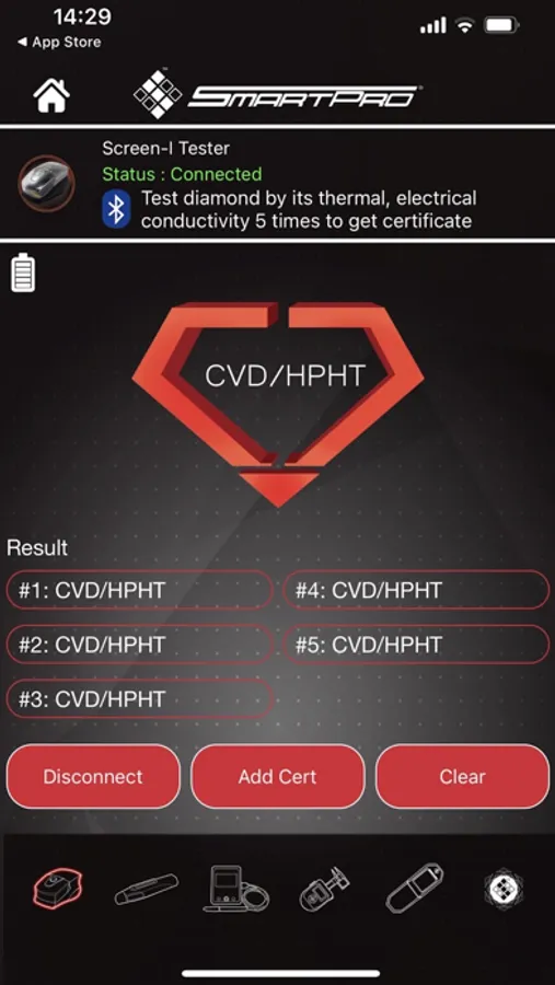 This application is used to display measurement test results which is synchronized with SmartPro devices. Users may generate, share and print certifications for Diamonds, Moissanites and CVD/HPHT by completing the required tests and certification form.