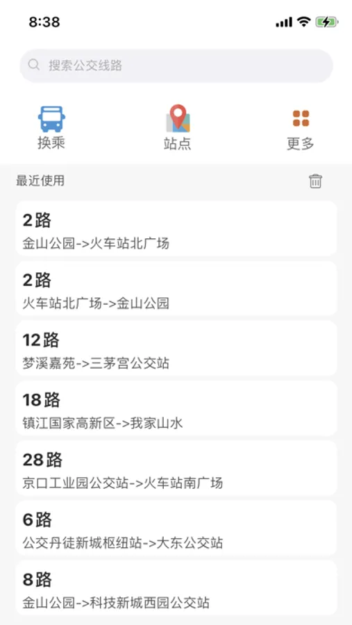 1. 随时随地准确获取镇江公交实时到站查询、线路查询、换乘查询、站点查询等信息。界面简洁,一目了然;
