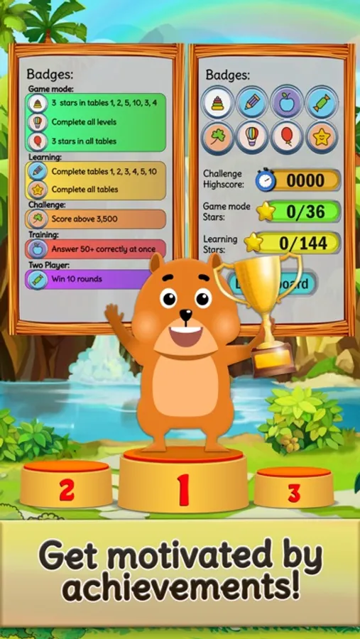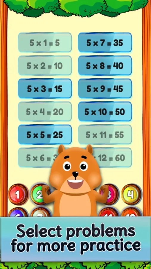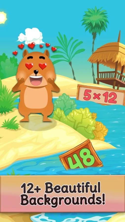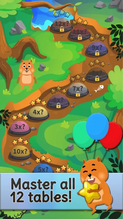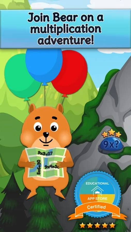 Your child will begin their times tables quiz with bear and his colorful balloons. Laugh with and join his journey flying across beautiful landscapes. Answer the math flash cards correctly and bear continues his mathematics adventure. Miss more than 2x and POP! It’s game over. Can you beat all 12 themed levels covering up to 12x12?