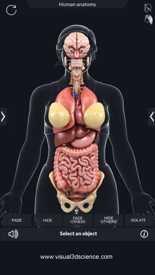 Organs Anatomy gives users an in depth look at the Organs allowing them to select , x-ray view, hide and show individual Organs as well as , draw or white on screen and share screenshots, Audio pronunciation for all anatomical terms and more.