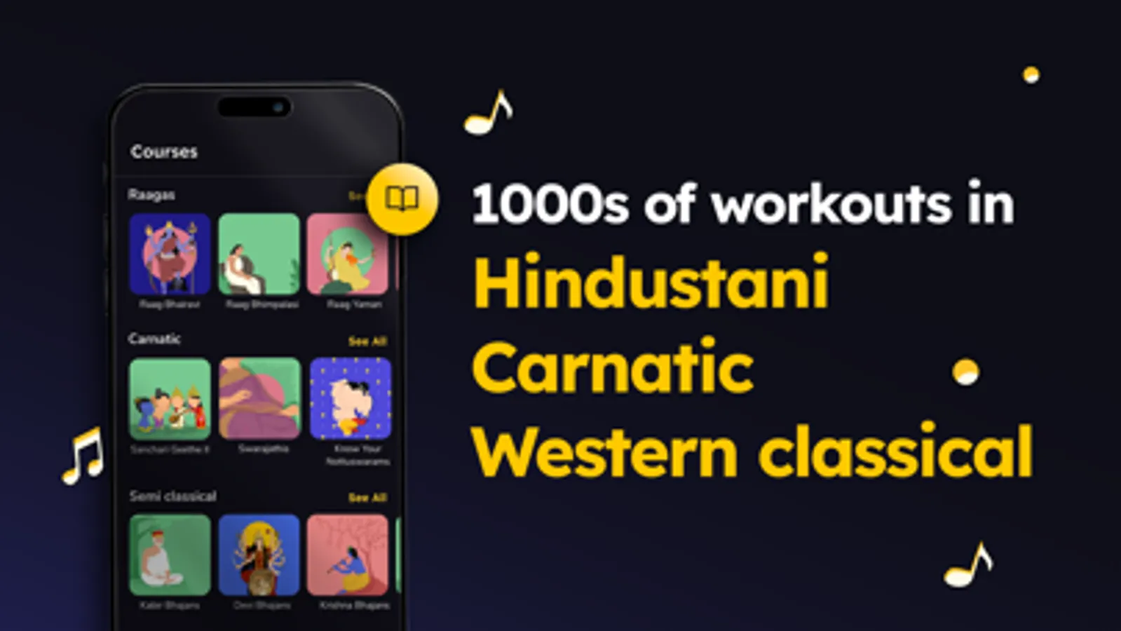 Download now and have ready access to thousands of practice lessons and songs in Carnatic, Hindustani classical, Devotional (light classical), Bollywood, and Western classical music styles!