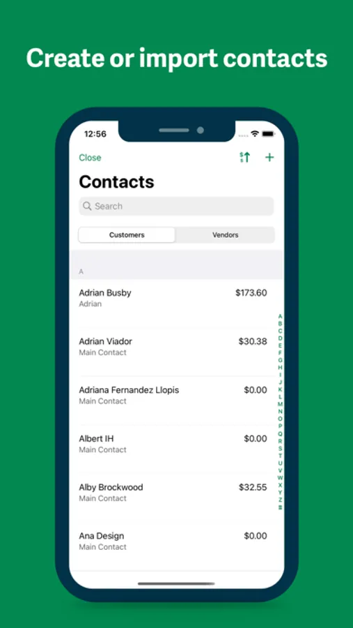 ● Review and manage all of the invoices and transactions for each of your contacts.