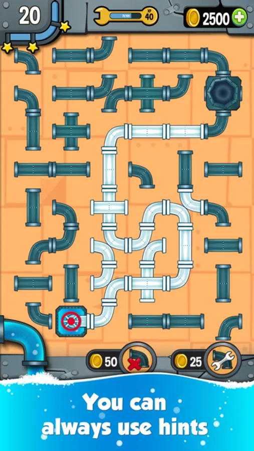 Solve the puzzles quickly to gain more experience points, just like a seasoned plumber who gains expertise with each successful job. And remember, even the best plumbers sometimes need a blueprint. So, if you get stuck at any level, you can always use our helpful hint system.