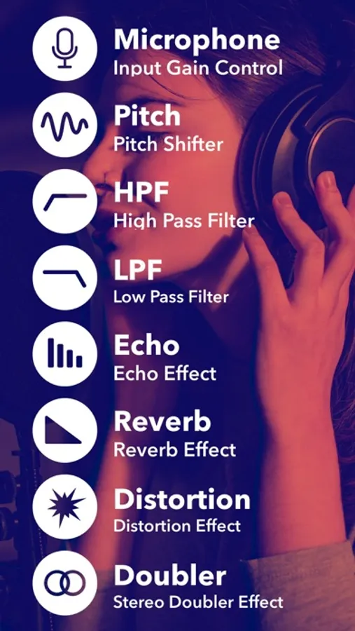 You can listen to the sound while recording using your microphone and headphones, and you can add audio effects in realtime so that it's really useful for vocal practice and ASMR recordings.